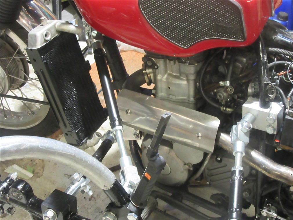 The sidecar mountings and radiator mountings want to be in the same place so have moved the latter. However, it ends up with the left hand rad (there are 2) being about 30mm higher than the RH one. The latter has the filler cap. This means that if I fill it up completely there will be a space at the top of the LH one (which has a bleed screw at its top).