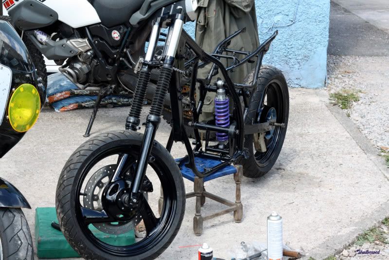 Made the mounts up for the new tail light last night and began stripping the FZR caliper for the front.