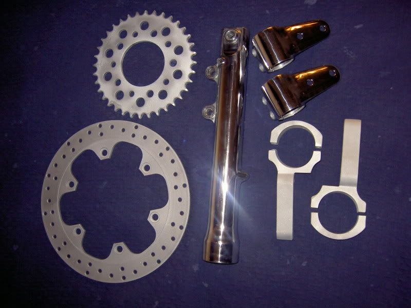 The fork braces and the rear sprocket will be painted black using just plain aerosole. The front disk will get some heat resistant black on it. The polished fork tube is a disaster - I don't like the look and hence didn't bother being too picky with the end result, but now I need to polish the other one too. I might end up painting them next year. The headlight brackets turned out beautiful - I shortened them about 20-30mm to get the headlight tucked a bit more closer to the forks and also drilled holes for the LED front blinkers.