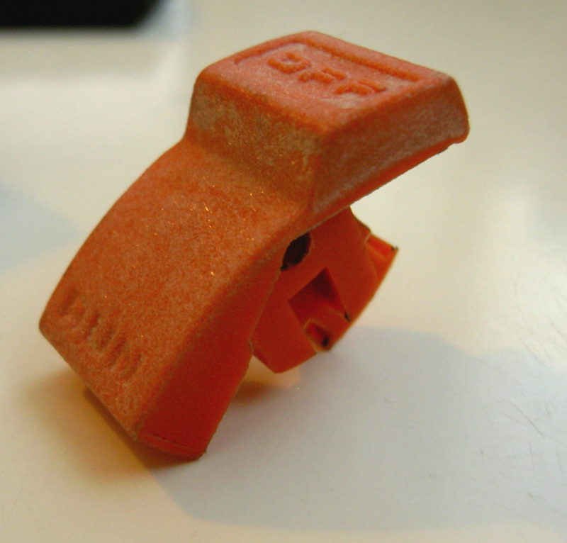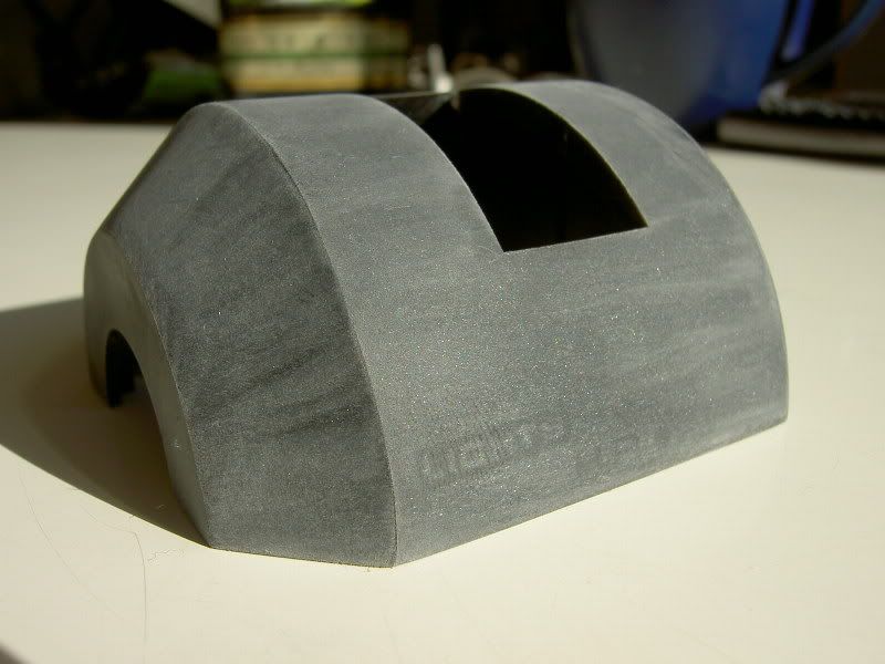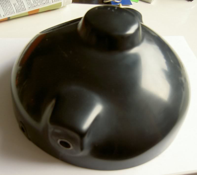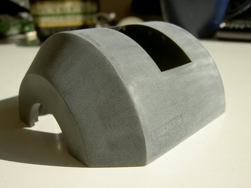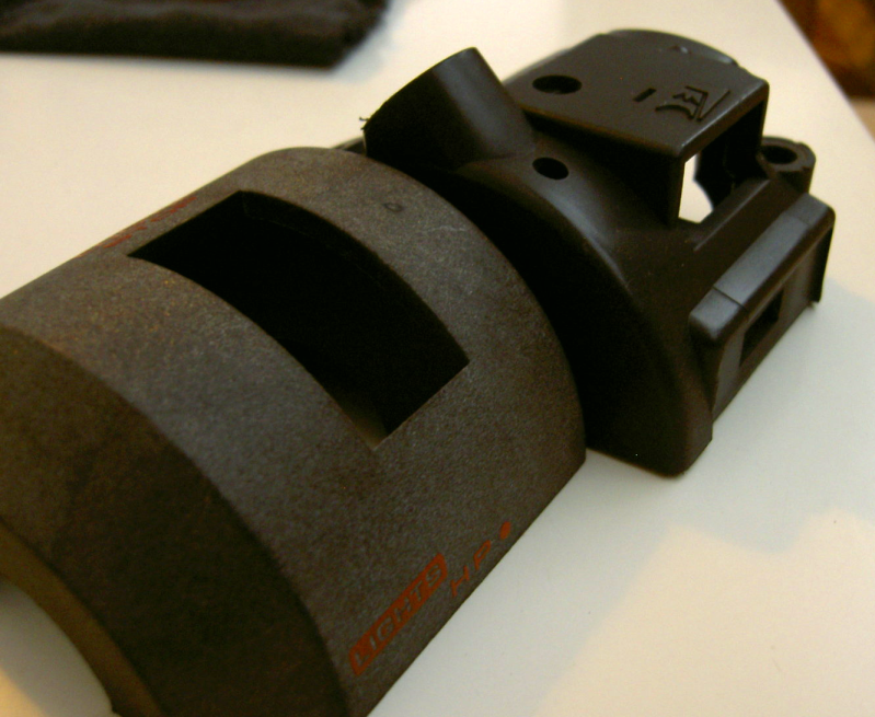 The top part of the main bracket (if you will) was strangely pitted and lacking colour. It almost seemed as if someone had sandblasted it and painted it with a very thin cloack of grey paint with silver flakes in it. The texture was really rough as the picture of the run/off-button shows. The bottom part was okay though. My concluson was that this is the result of plastic being exposed to UV-rays for 25 years. The problem is merely cosmetic but it still bothered be enough to start thinking about how to revive it. The obvious choise would be to paint it, but since I'm usually against painting for surfaces that don't need it I decided to try and polish it - after all, the part is made out of one piece of some sort of black composite.