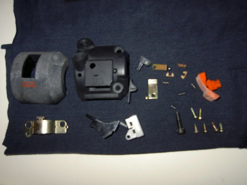 Tutorial: restoring old plastic handle bar switch assemblyAs the roads are melting FAST here, I've started to feel a bit too anxious to just slap the bike together, so I can ride it soon. However, I've decided to stay strong, do the bike so it will please me in every way as soon as it's done, although it might take more time. As my front end is mechanically starting to be together, I dug up the handlebar switches, which were in bad shape: