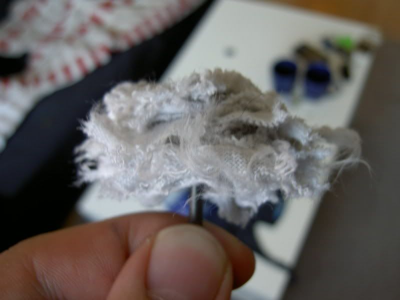 Then I took out my dremel-tool with a self-made "buffing wheel". This was essentially made using small pieces of an old 100% cotton t-shirt pressed together.
