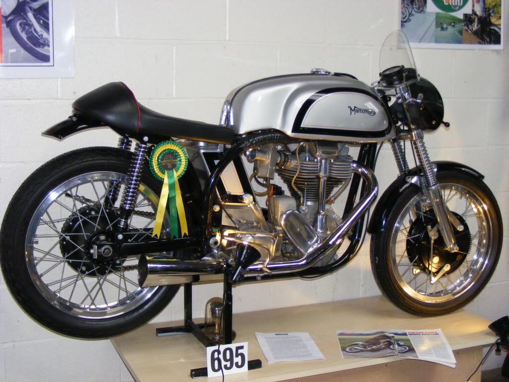 Us old riders, 65 plus, have pretty much done most things with bikes, 350cc to us was a reasonable tourer, 500cc was a good sporting ride. A 650cc bike was good for doing almost anything, touring, with a passenger and luggage, as a cafe racer, a sporting model to race your mates around the local cafes, dance halls and bars, anything bigger was extraordinary, the Vincent /Nortons etc. offered performance beyond normal, almost too much. In the background was the TT and Manx GP with our heroes doing their stuff. One of the things we dreamed of was emulating these racers, taking corners as fast as possible, flat out down hills. just going for it regardless. Owning these sorts of bikes was not possible, they belonged in another world. I happen to have now owned three of the "dream" bikes of my era, A BSA Gold Star, a Velocette Thruxton and a Manx Norton, ok, my Manx is not a "bona fides" correct in every detail, Norton production racer, but it is a double knocker, Ken Sprayson works framed 500 with PAL mag and Gardner carburettor. I love the Thruxton, it is a usable "classic" that does about 5-6000 miles a year, gets shown as a "used bike" not concourse and a bit rattley. I recently set out to put the Manxman on the road, brand new and unused as it is. I wanted to try to ride it on the road the way I always dreamed of. After a trip to my favourite (now) MOT station (thanks 002) and numerous dealings with DVLA ( who were helpful and positive ) G 5 MNX is now on the road legally, taxed and insured, and this afternoon, sunny and warm, I was able to go for a ride. A Manx on IOM close ratio gearing is not fun in town, a bit like a Gold Star but with clean torquey power, out on the open roads, up into the mountains it is really great, the manx frame is right, the 54bhp engine pulls really well and the whole ensemble is beautifully balanced. I felt so moved by this experience I thought I would share it, we are not all overcome by "classicitus".