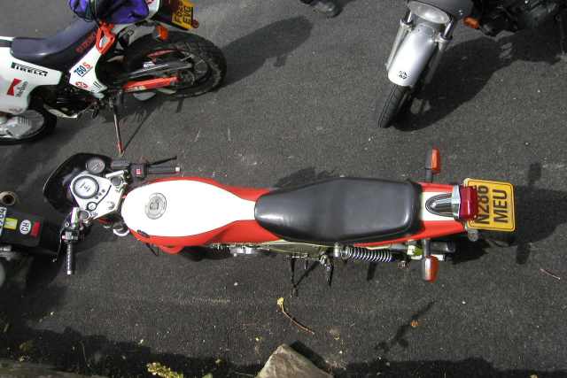 1JK, red tank, scorpion pipe, 620 slipstream motor, FZR 400 front end and wheels, adjustable Koni's, rearsets.