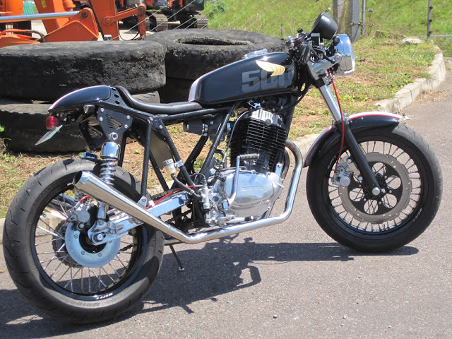 hmmm... not sure Bill.... i'm a great fan of the Café style.... but this one doesn't quite do it for me... not sure why... pipes are a bit too raked for my liking and seat should be further back... and the clip-ons are far too high and wide and the rearsets aren't (that's r e a r s e t s in case the pc police pick it up)  but who am I to  comment... its a nice job but more in the streetfighter mould than café, but i'm just a boring old f a r t, and know nuffink