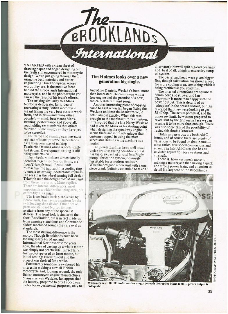I'll have to have a rummage and find the article. I should be able to scan and somehow get the pic up. The bike if I remember was a Featherbed but IRC it had a Cammie Norton engine.